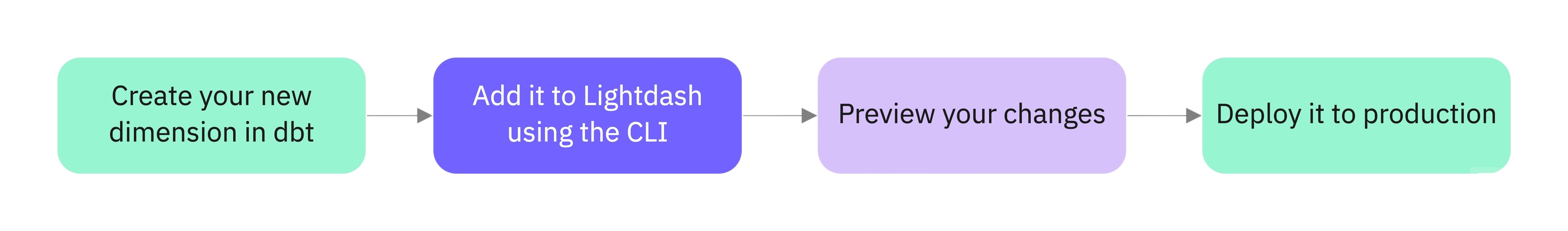 Dimensions are fields that are used to segment data from your Tables. They are directly linked to a column in a dbt model. For a dimension to exist in Lightdash, it needs to be a column in your dbt model first.